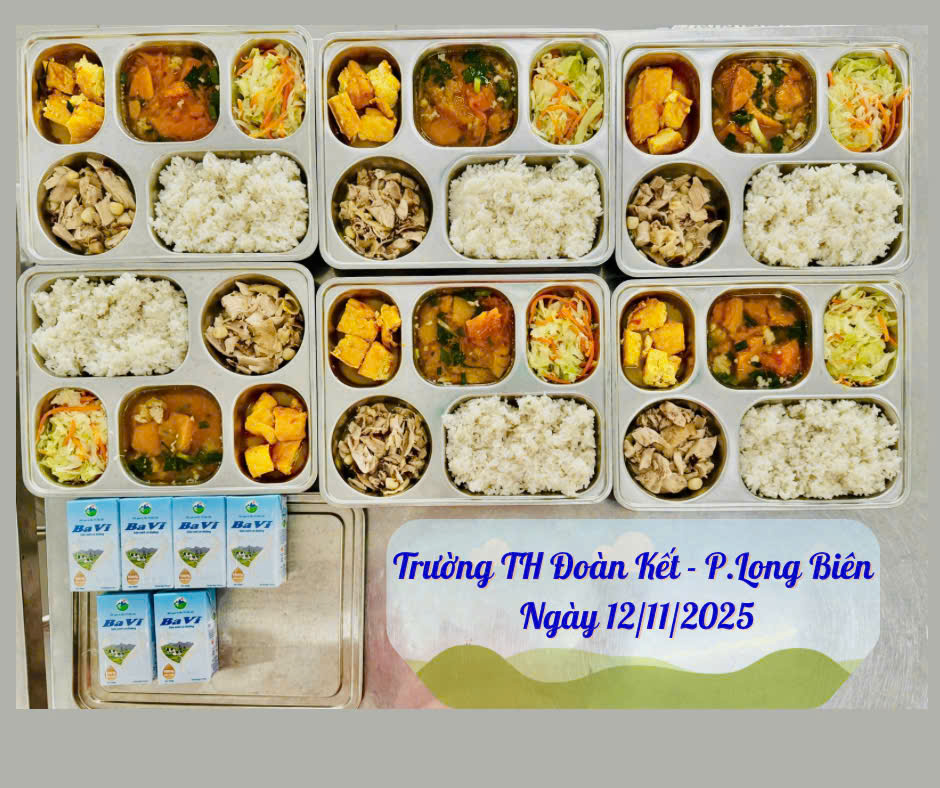 Hính ảnh suất ăn ngày 12/11/2025 của HS trường TH Đoàn Kết, phường Long Biên, HN