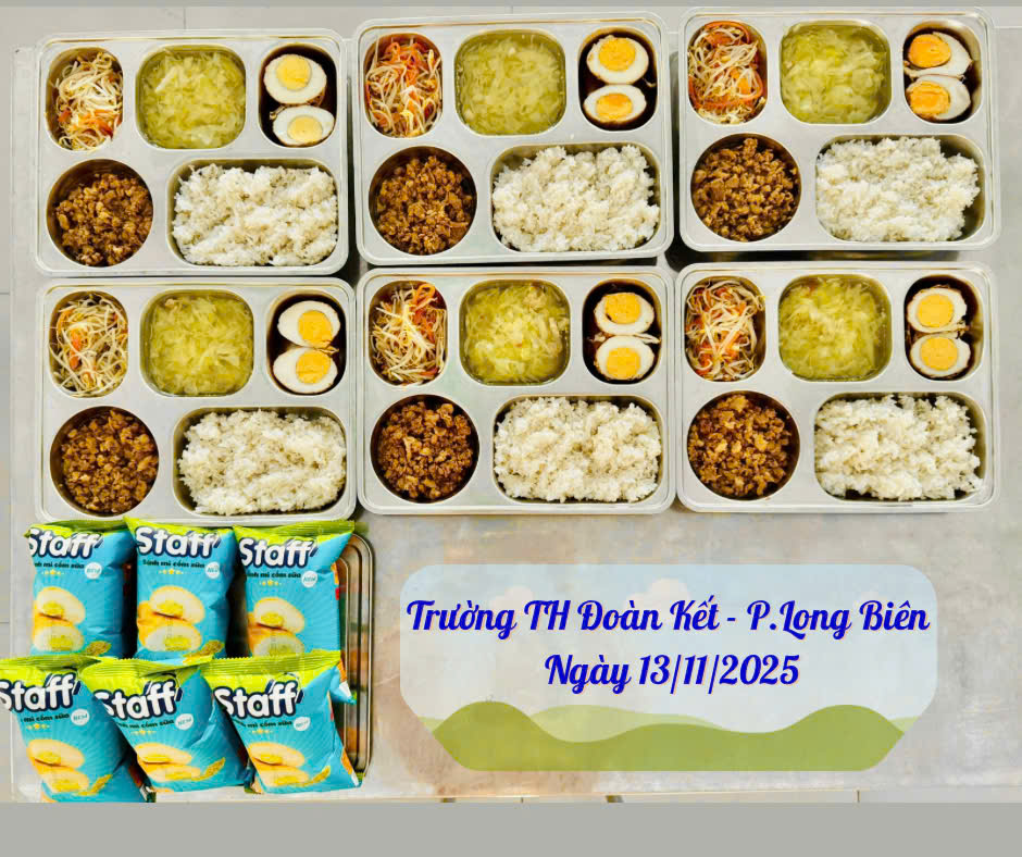 Hính ảnh suất ăn ngày 13/11/2025 của HS trường TH Đoàn Kết, phường Long Biên, HN