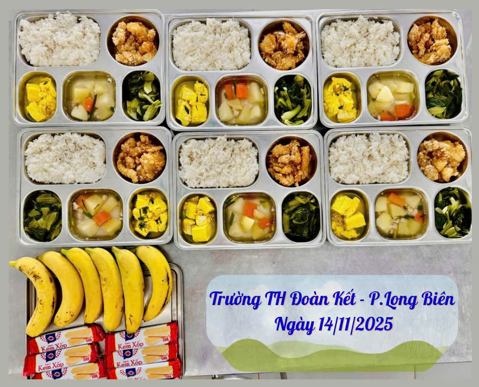 Hình ảnh suất ăn ngày 14/11/2025 của HS trường TH Đoàn Kết, phường Long Biên, HN