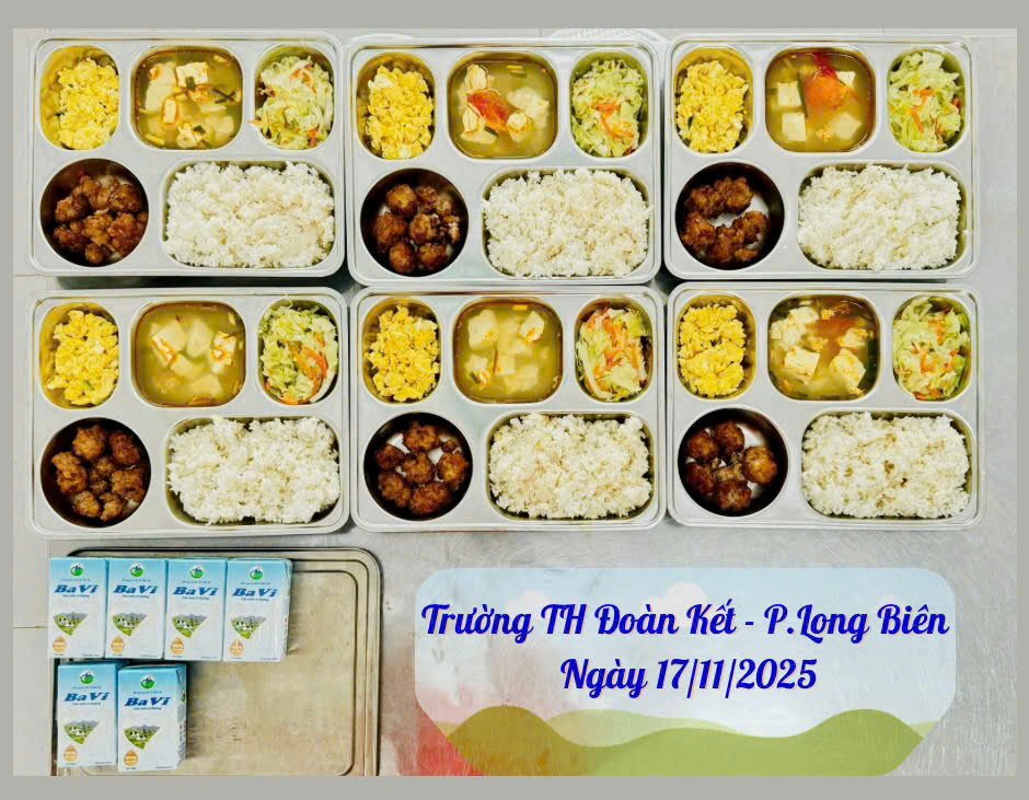 Hình ảnh suất ăn ngày 17/11/2025 của HS trường TH Đoàn Kết, phường Long Biên, HN