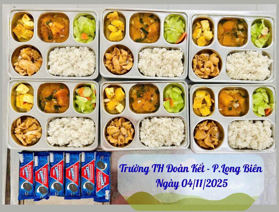 Hình ảnh suất ăn ngày 04/11/2025 của HS trường TH Đoàn Kết, phường Long Biên, HN