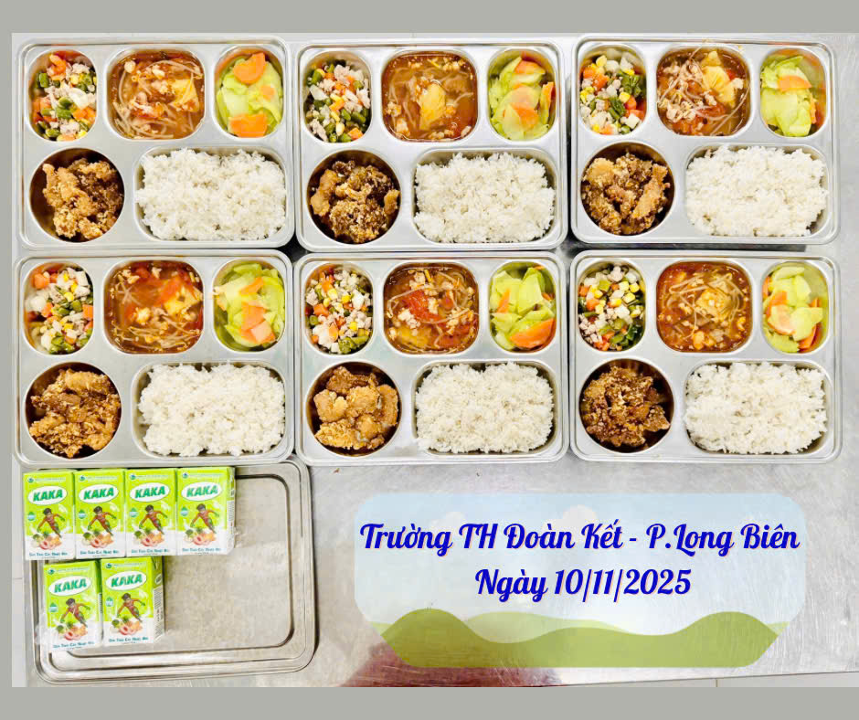 Hình ảnh suất ăn ngày 10/11/2025 của HS trường TH Đoàn Kết, phường Long Biên, HN